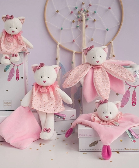 Тази красива плюшена прегръдка не само предоставя нежност и утеха, но и развива сетивата и любопитството на децата. Дизайнът съчетава тренди цветове и меки материали, което прави този комплект привлекателен както за най-малките, така и за по-големите деца.