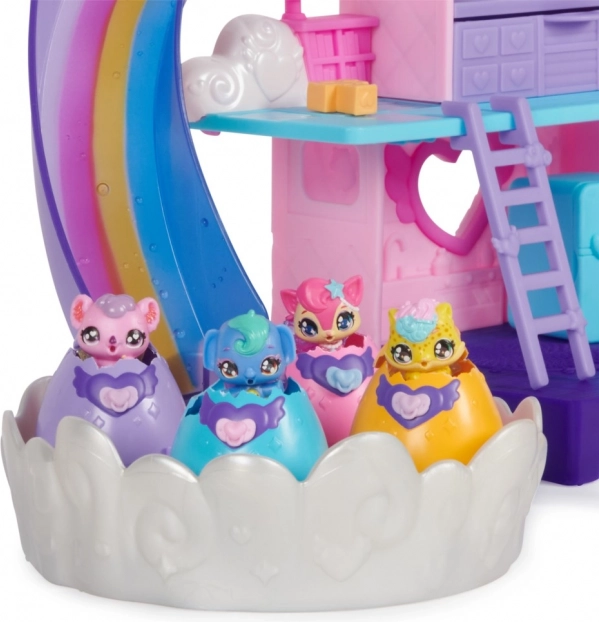 Представяме Hatchimals игрови комплект Дъгов свят излюпване във вода, който предлага часове забавление и креативност. Този игрови сет включва: