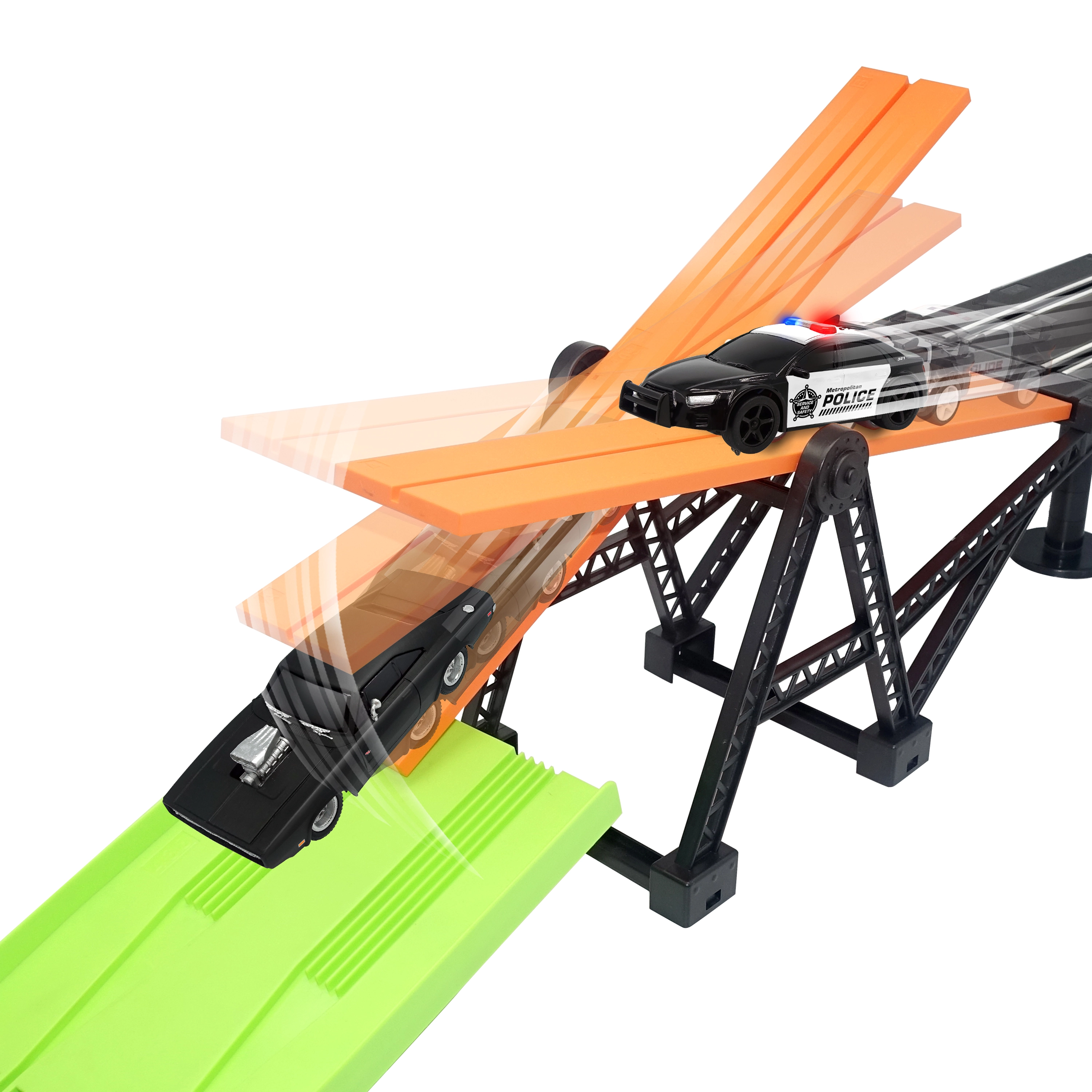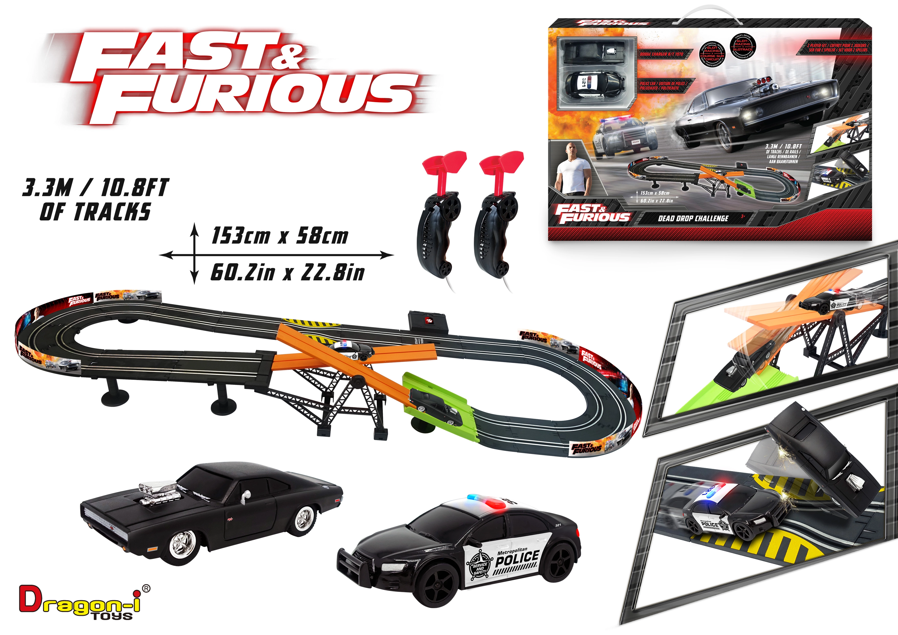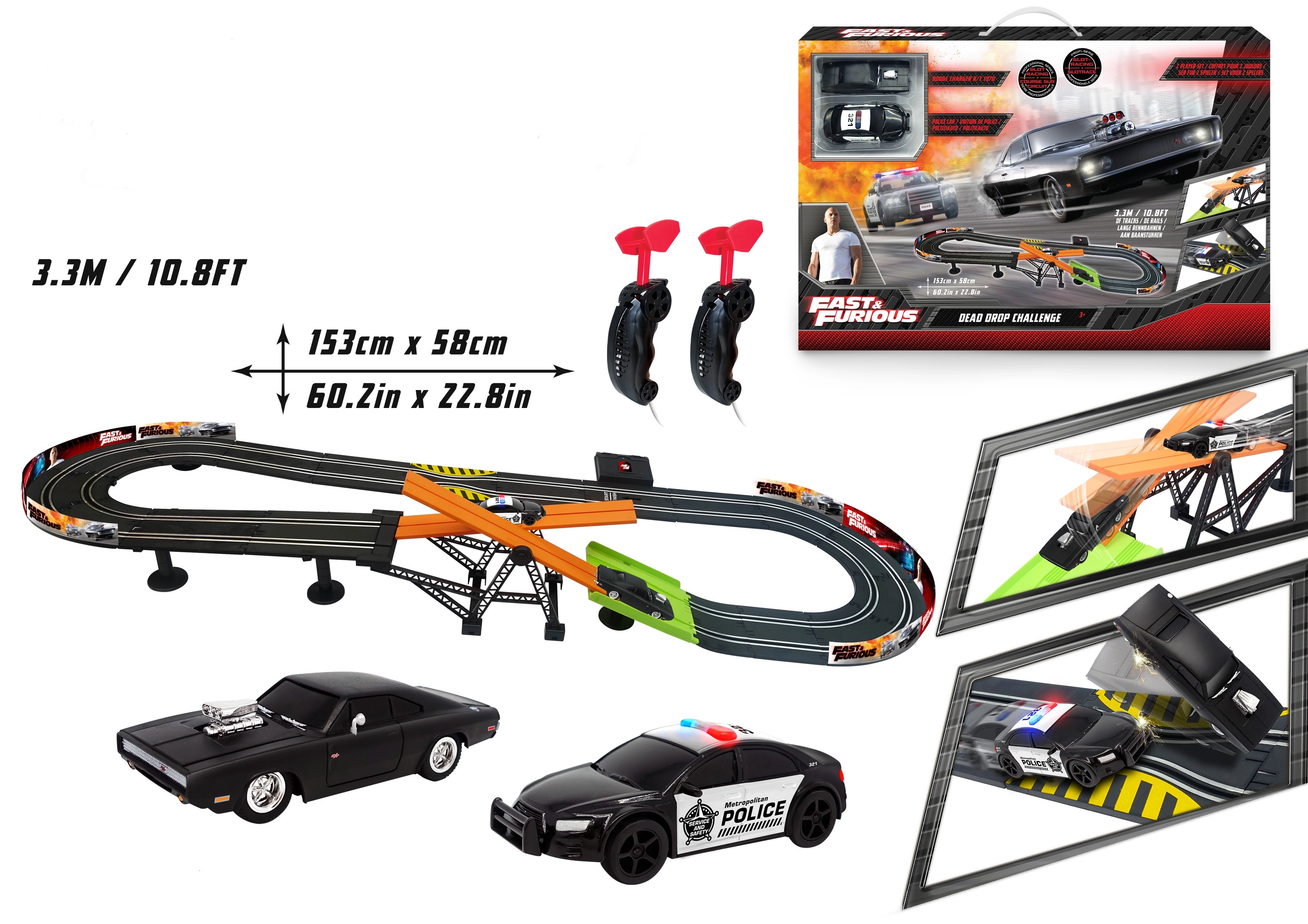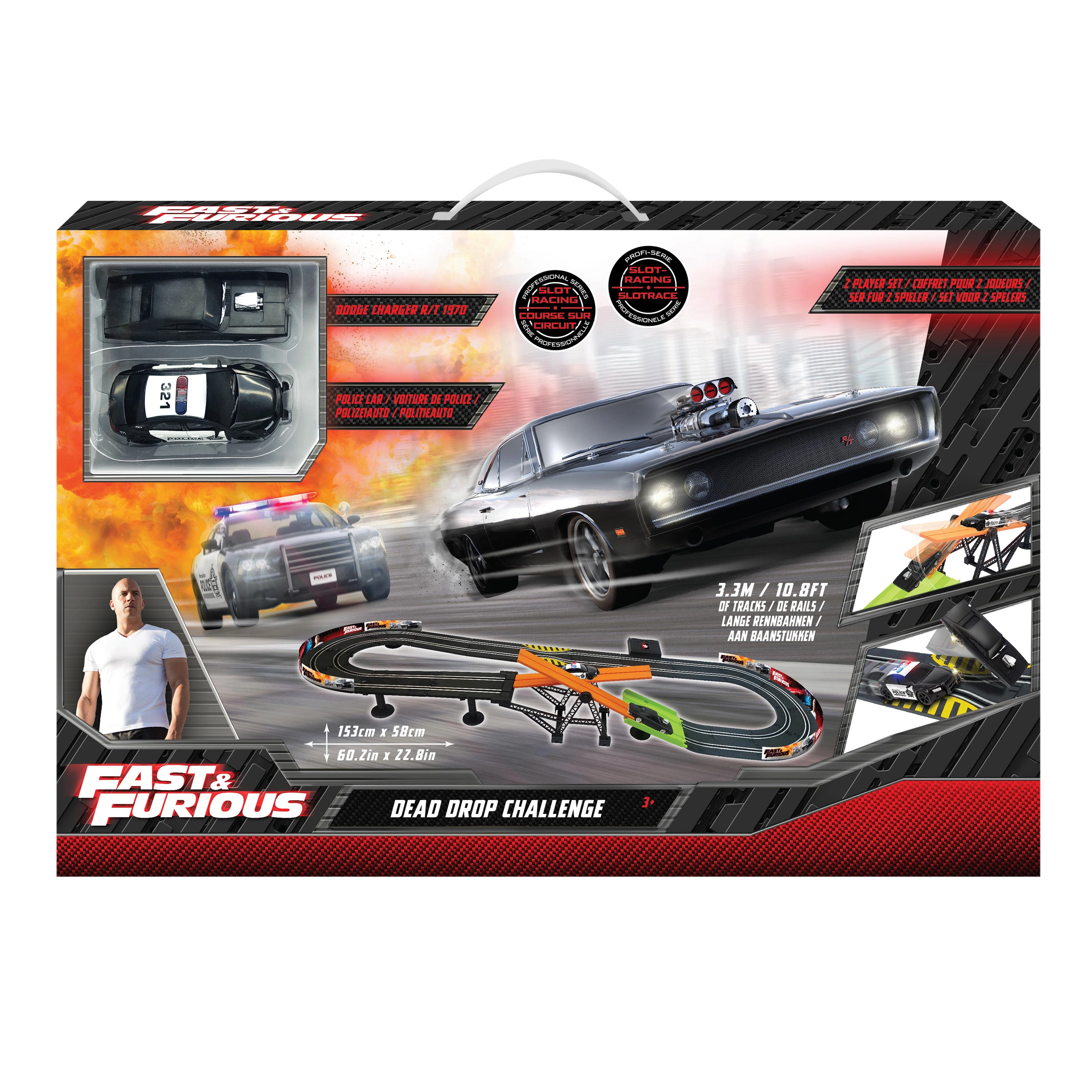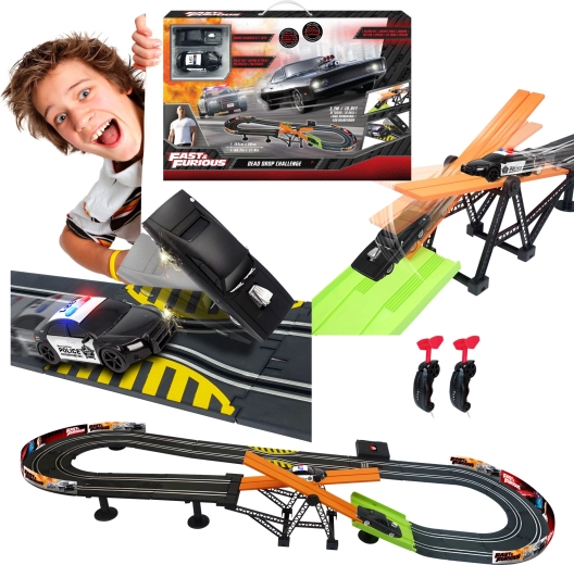 Влезте в света на скоростта и напрежението с пистата FAST & FURIOUS Dead Drop Challenge. Комплектът в мащаб 1:43 предлага динамично разположение с дължина 3,3 м с екшън елементи, които ще изпитат вашите шофьорски умения. Благодарение на двата автомобила – емблематичния Dodge Charger R/T 1970 и полицейската кола – ще се насладите на автентични преследвания, вдъхновени от филмовата поредица.