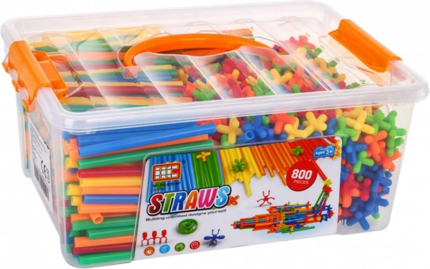 Открийте забавен конструктор, който развива детското въображение и фината моторика. Цветните сламки в пет цвята лесно се свързват с помощта на здрави конектори, така че се получават стабилни 3D модели – от прости форми до сложни конструкции. Благодарение на практичната кутия с дръжка комплектът е идеален и за пътуване и се прибира лесно.