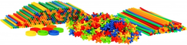 - 100 дълги сламки, 300 къси сламки, 400 конектора с различни форми, затваряща се кутия с дръжка, илюстрирано ръководство