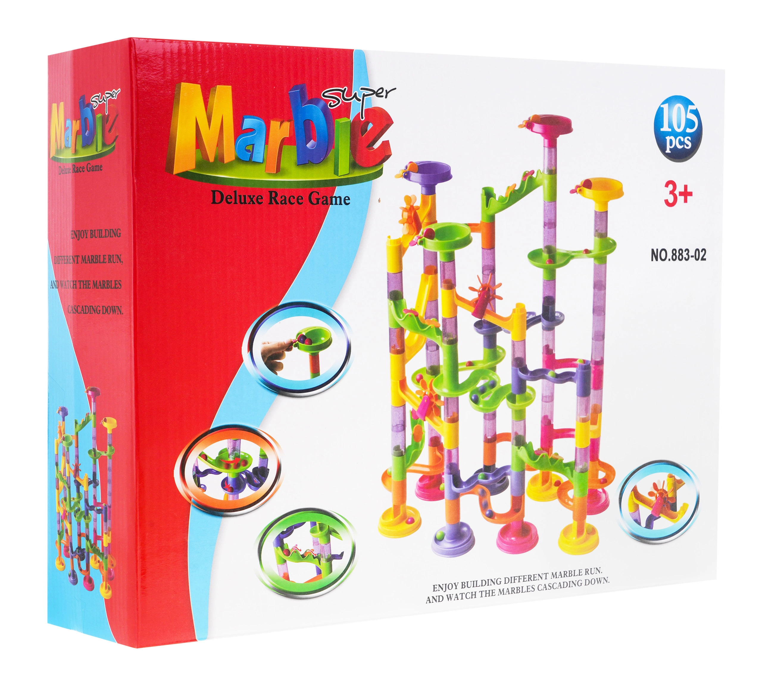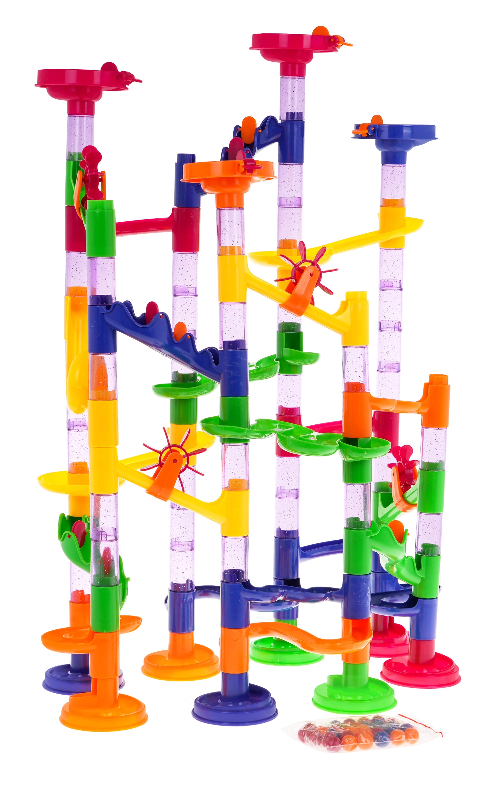 Цветна и устойчива писта за топчета за деца от 3 години, която развива креативността и сръчността. Идеална е за самостоятелно конструиране и последващо наблюдение на движението на топчетата.