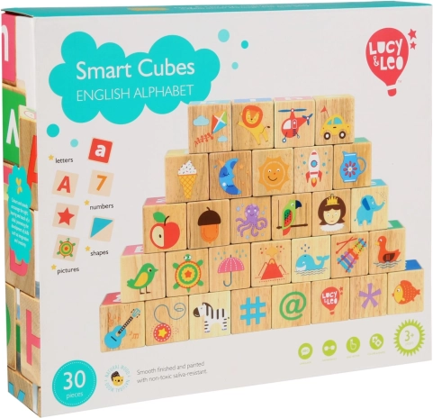 Този удивителен образователен комплект съдържа 30 кубчета с букви, цифри и изображения, които подпомагат децата в развитието на езика и креативността. Обучавайте децата по забавен начин с цветни кубчета, предлагащи безброй възможности за подреждане и учене.