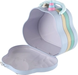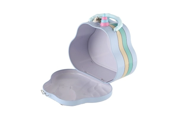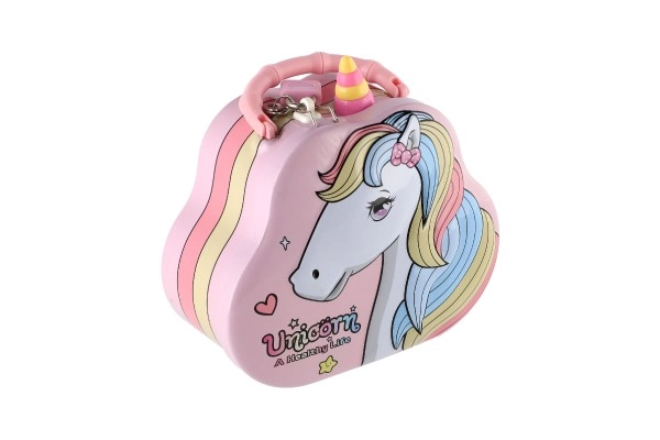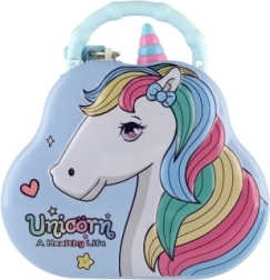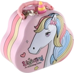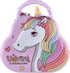 Търсите сладък и практичен подарък за деца? Металната касичка – чантичка с еднорог е идеалният избор. Децата ще съхраняват безопасно първите си спестявания благодарение на заключващия се капак, а горната цепка за монети улеснява ежедневното спестяване.