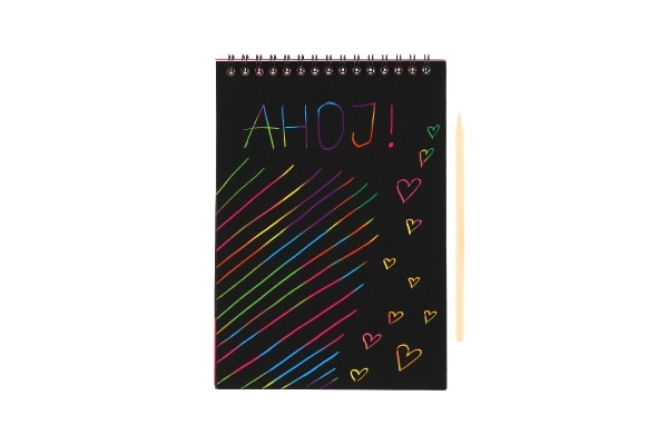 Скрапбук тетрадка е страхотен помощник за деца, които искат да развиват своята креативност. На всеки от 10-те листа могат да създават пъстроцветни рисунки с помощта на включеното инструментче за изстъргване.