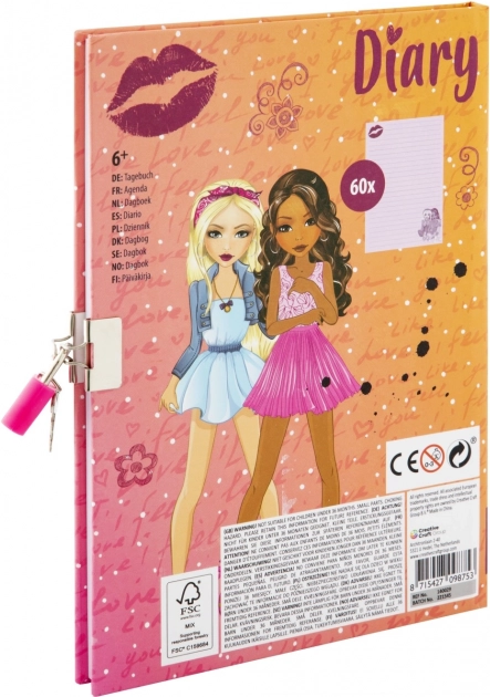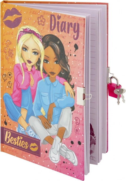 На корицата на дневника са изобразени две рисувани фигури с надпис „Besties“, което го прави стилен аксесоар.