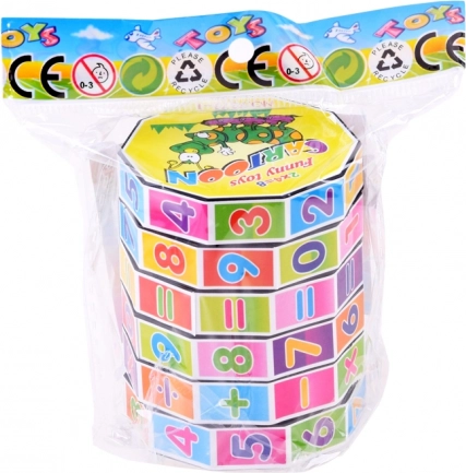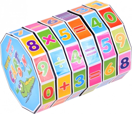 Този математически цилиндър е чудесно пособие за деца, които учат числата и основните аритметични операции. Въртящите се сегменти с числа и символи позволяват съставяне и проверка на лесни примери, което помага на децата да затвърдят материала по приятен и забавен начин.