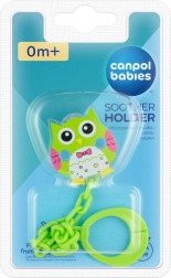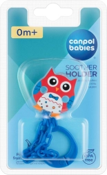 Практична верижка за биберон с очарователна совичка от марката CANPOL babies държи биберона винаги под ръка и чист. Благодарение на здравия клип се прикрепя лесно към дрехите и предотвратява падането на пода. Изработена е от устойчив пластмасов материал, лека е, цветна и подходяща за ежедневна употреба. Сигурно закрепване, хигиена и лесна поддръжка в едно.