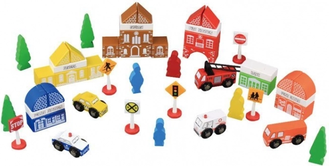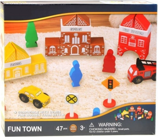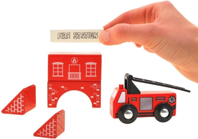 Дървените конструктори Градче Пожарна станция са изработени с внимание към детайла. Цветните части привличат вниманието и насърчават играта. Тези дървени блокчета са здрави и ще служат дълго време. Произведени от естествени материали, те са напълно екологични.
