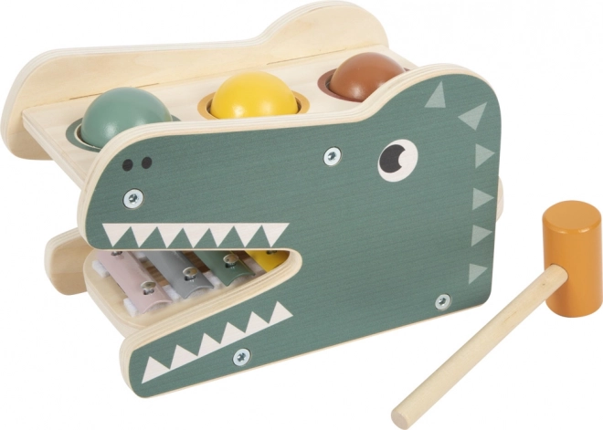 Открийте забавна играчка 2 в 1: ксилофон и чукалка във форма на сладък крокодил. Децата се наслаждават на музикално откривателство, като едновременно развиват фината моторика, координацията око-ръка и разбирането за причинно-следствени връзки. Подвижният ксилофон с цветни клавиши може да се използва и самостоятелно – двойна доза забавление и учене.