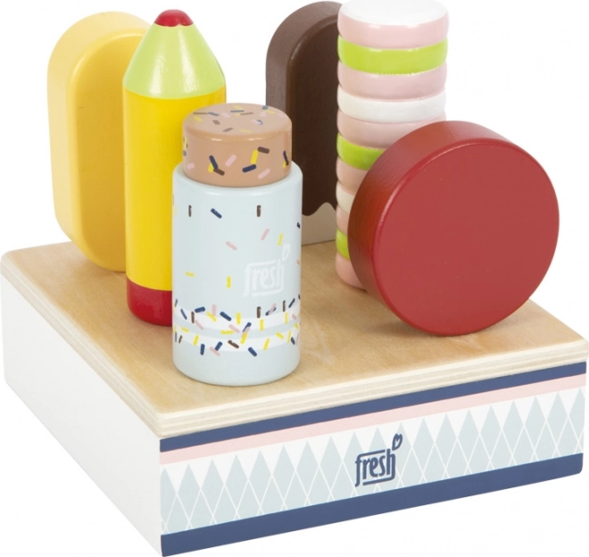 Нежните цветове и реалистичните форми подпомагат сетивното възприятие, докато поставянето и изваждането на сладоледите тренира координацията око–ръка. Комплектът се комбинира отлично с компактния щанд FRESH, за да се получи цяла сладоледена станция за часове креативна игра.