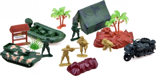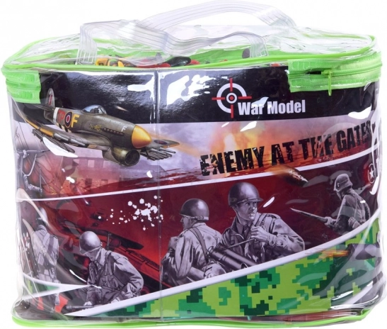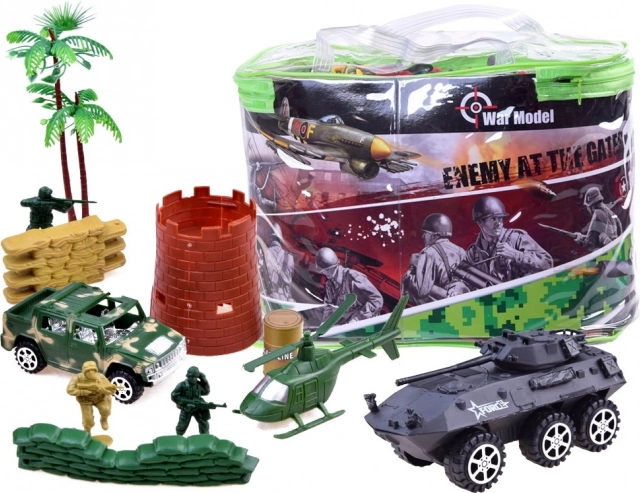 Този голям комплект военни играчки предлага всичко, което децата се нуждаят, за да създадат свои собствени бойни сценарии и стратегически игри. Включва цяла гама превозни средства като танкове, хеликоптери и военни джипове, както и важно оборудване и фигурки на смели войници. Комплектът подпомага развитието на стратегическото мислене и креативността.