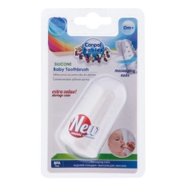 Започнете с правилната грижа за устната кухина от самото начало. Силиконовата пръстова четка CANPOL BABIES помага нежно да почиствате първите зъбки и да облекчавате неприятните усещания при пробиване. Ергономичната форма за поставяне на пръста дава на родителите максимален контрол и позволява достигане и до по-труднодостъпни места.