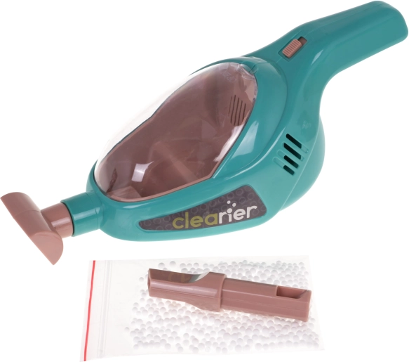 Интерактивният ръчен прахосмукач с 3× AA (не са включени) има светлинно осветяване отвътре, реалистичен звук на засмукване и истинска функция за засмукване на дребни полистиренови топчета. Благодарение на сменяемите накрайници (смукателен и тесен) децата могат да изпробват различни сценарии на почистване.