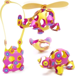 CLIXO Crew Pink & Yellow е огъваем магнитен конструктор, вдъхновен от оригами, който превръща шепа леки елементи в десетки различни творения – от животни и вятърни мелници до хеликоптери, които могат и да се окачват. Силните магнити във всеки елемент позволяват лесно свързване и стабилни конструкции без нужда от инструкция, като в комплекта има и брошура с идеи.