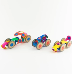CLIXO Wheel Creator е гъвкав магнитен конструктор за деца на възраст 6–10 години, който развива креативност, пространствено мислене и фината моторика. Благодарение на въртящите се магнити с фиксация в 24 позиции моделите запазват стабилна форма и издържат на динамична игра. Дървените колела вдъхват живот на вашите творения – от коли и влакове до очарователни животинки – всичко това в ярки дъгови цветове.