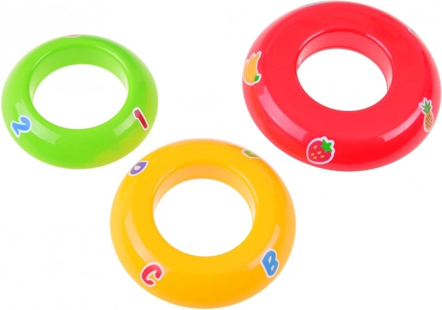 Подреждането на цветните пръстени по размер помага на децата да упражняват сръчност, логическо мислене и разпознаване на цветовете.