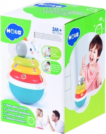 Подреждащата играчка с еднорог предлага няколко етапа на игра, които стимулират сетивата на децата. Проектирана е да „расте“ заедно с детето и да развива неговата моторика и логическо мислене.
