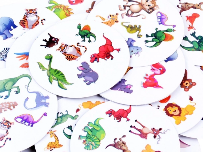 Съдържа до 30 цветни карти с уникални илюстрации на животни като динозаври, тигри, слонове и лъвове. Тези карти не само забавляват, но и подпомагат визуалното разпознаване и паметта.