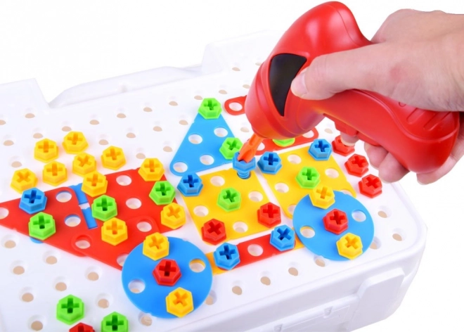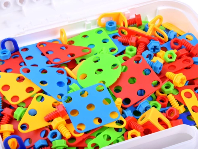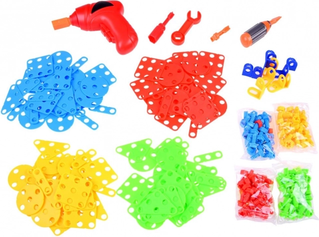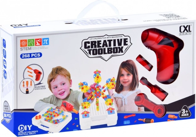 Подкрепете детската креативност и фината моторика с този голям конструкторен сет в практично куфарче. Съдържа 268 части, цветни форми, винтове и детска бормашина на батерии за истинско завинтване. Отличен избор за учене чрез игра, развитие на логиката и пространственото мислене.