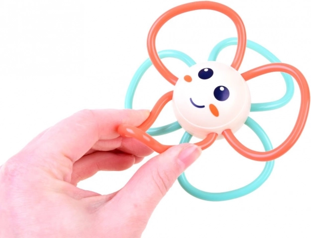 Тази дрънкалка има весела жабешка визия с тюркоазена дръжка и оранжев водовъртеж на коремчето. Осигурява забавление и стимулация за децата.