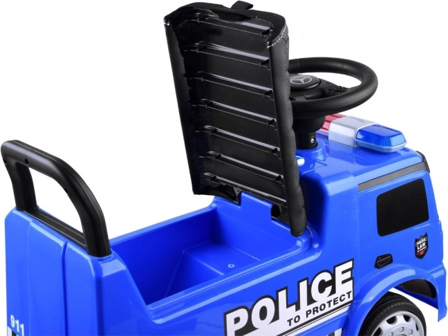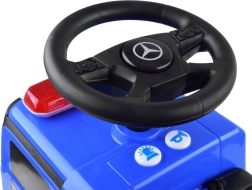 Колелото-ридон Mercedes Полиция е отличен избор за малки деца. Оборудвано е със звуков клаксон и светещ маяк, които се активират с натискане на бутони. Удобната седалка с облегалка осигурява безопасно и комфортно каране, а благодарение на специалната блокировка превозното средство не се преобръща назад.