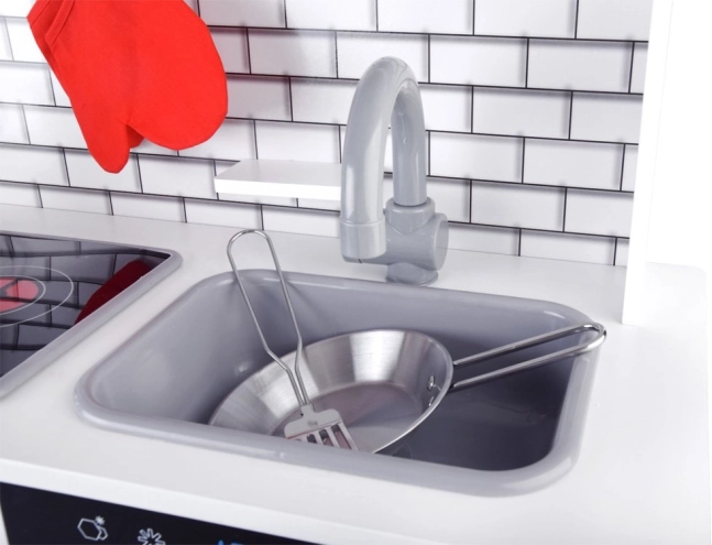 Кухничката е оборудвана със светлинни и звукови ефекти, които предоставят на децата реалистично усещане за готвене.