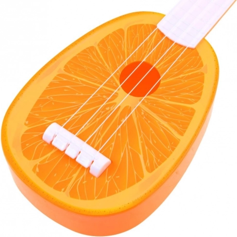 Това пластмасово укулеле е създадено за най-малките любители на музиката. Лекият корпус лежи удобно в детските ръце, а ярката плодова графика мотивира към по-честа игра. Благодарение на четирите найлонови струни и лесното настройване децата бързо усвояват основите на ритъма и мелодията.