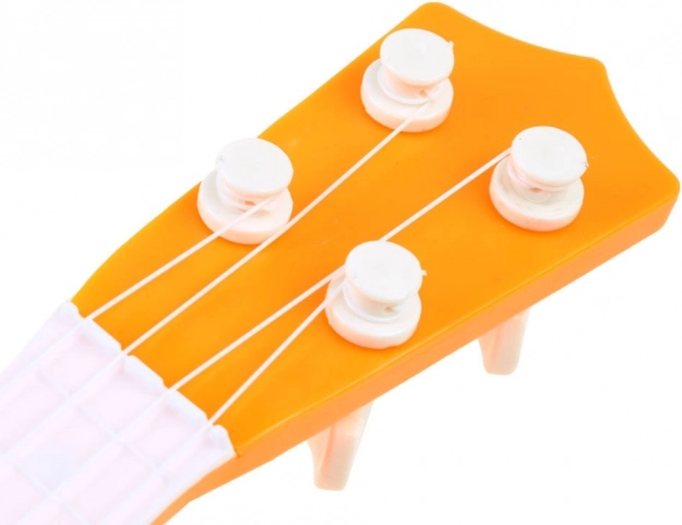 Регулируемият гриф и 4-те струни позволяват на децата да изпробват първи акорди и прости мелодии.