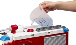 Детайлно изработен спасителен модел в мащаб 1:16 предлага автентични функции, които децата обичат. Кабината побира трима пожарникари, а още трима могат да седнат отзад. Прозрачни, нечупливи прозорци, отваряеми врати и странични шкафове с падащи капаци придават реализъм на играта.