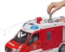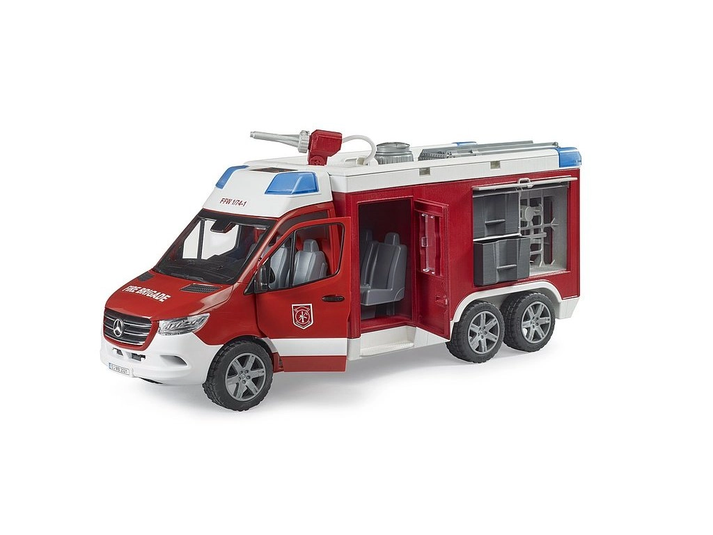 Реалистичният пожарен автомобил MERCEDES-BENZ Sprinter от марката Bruder ще зарадва всеки малък спасител. Предлага функционално водно оръдие с резервоар и помпа, светлинен и звуков модул, отваряеми врати и отделения за съхранение и меки протектори на гумите за чудесна игра. Качествена изработка от устойчива ABS пластмаса и съвместимост с аксесоари BWORLD гарантират дълъг живот и забавление.