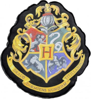 Стилна възглавница HARRY POTTER във формата на герба на училището Хогуортс в елегантен черен цвят красиво ще допълни детската стая и гийк интериора. Тя е приятно мека, изработена от качествен полиестер и е идеална за отдих, декорация и удобно сядане. Благодарение на компактните размери е подходяща за легло, диван и за пътуване. Лицензиран оригинал, меко и удобно изпълнение, практична поддръжка и мотив на Хогуортс ще зарадват всеки фен на магьосническия свят.