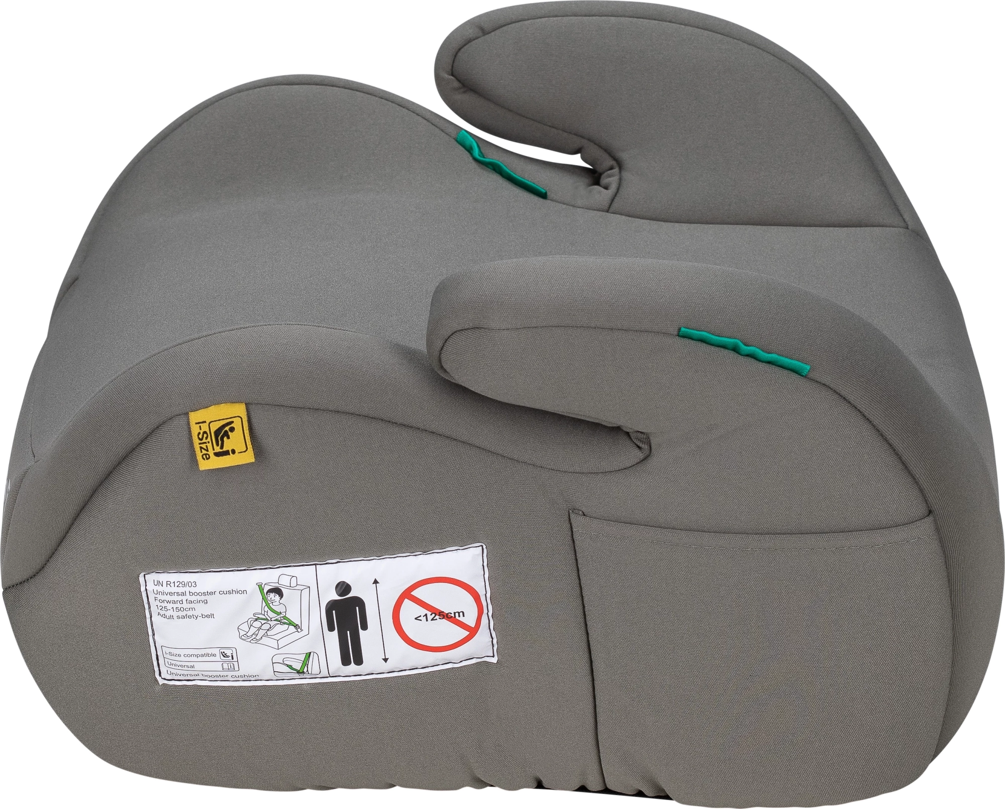 Повдигащата седалка отговаря на най-новия европейски стандарт i-Size за максимална безопасност и правилно водене на колана при растящи деца.