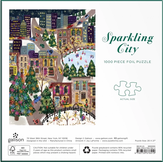 Насладете се на вълшебната зимна атмосфера с пъзела Sparkling City от 1000 части, чиито елементи имат металически блясък за ефект на злато и сребро. Благодарение на качествената изработка и прецизния изрез на частите подреждането е плавно и забавно, а приложеното ръководство улеснява ориентацията. След подреждане получавате декоративна картина с размер около 51 × 69 см.