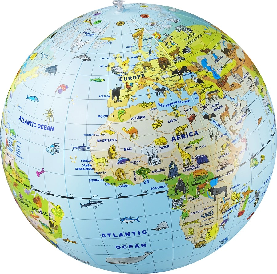 Този цветен надуваем глобус с животни помага на децата да разберат света около нас. При хвърляне, хващане и изследване на повърхността на топката откриват континентите, океаните и се учат да свързват животните с техните домове. Отлично средство за предучилищна и училищна възраст, което развива познавателни умения и подкрепя естественото любопитство.