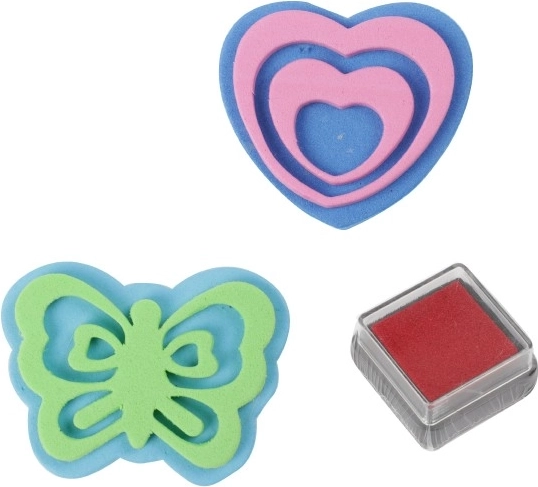Леките пяна печати и червената мастилена тампонка разширяват възможностите за декориране. Подходящи за хартия и домашни проекти за малки творци.