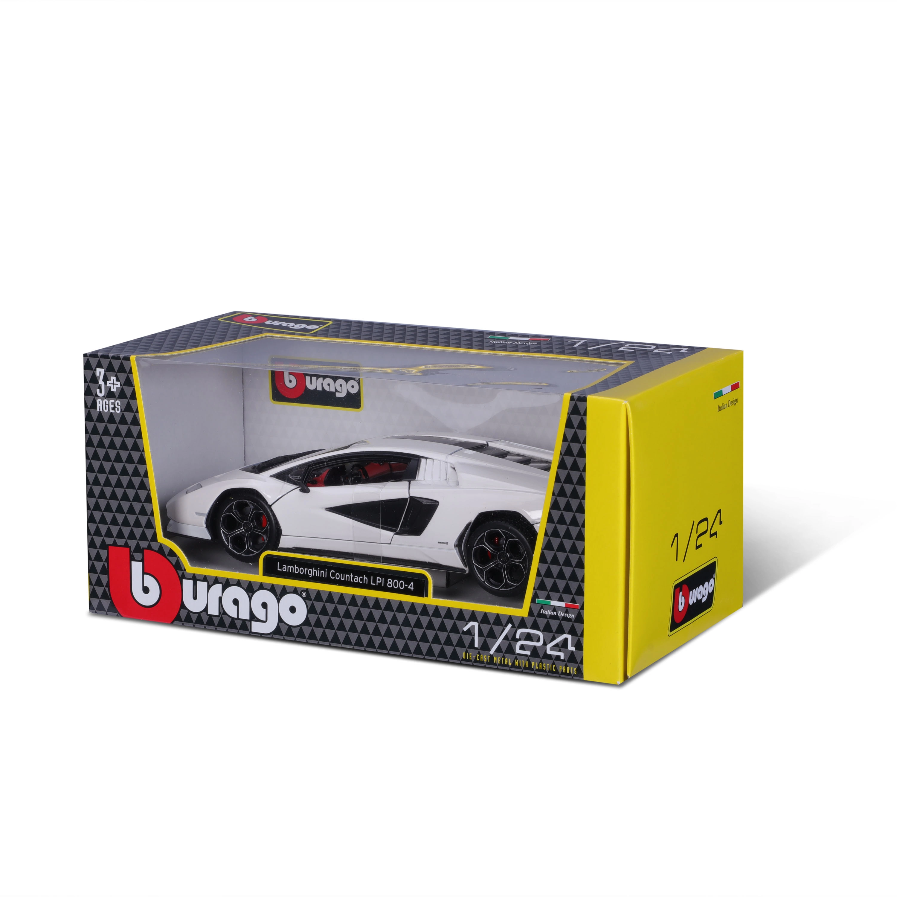 Прецизно изработен модел Lamborghini Countach LPI 800-4 в мащаб 1:24 от марката Bburago, който ще зарадва колекционери и малки ентусиасти. Предлага отваряеми врати, подвижни колела и детайлен интериор в елегантен бял цвят. Подходящ за деца от 3 години.