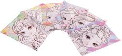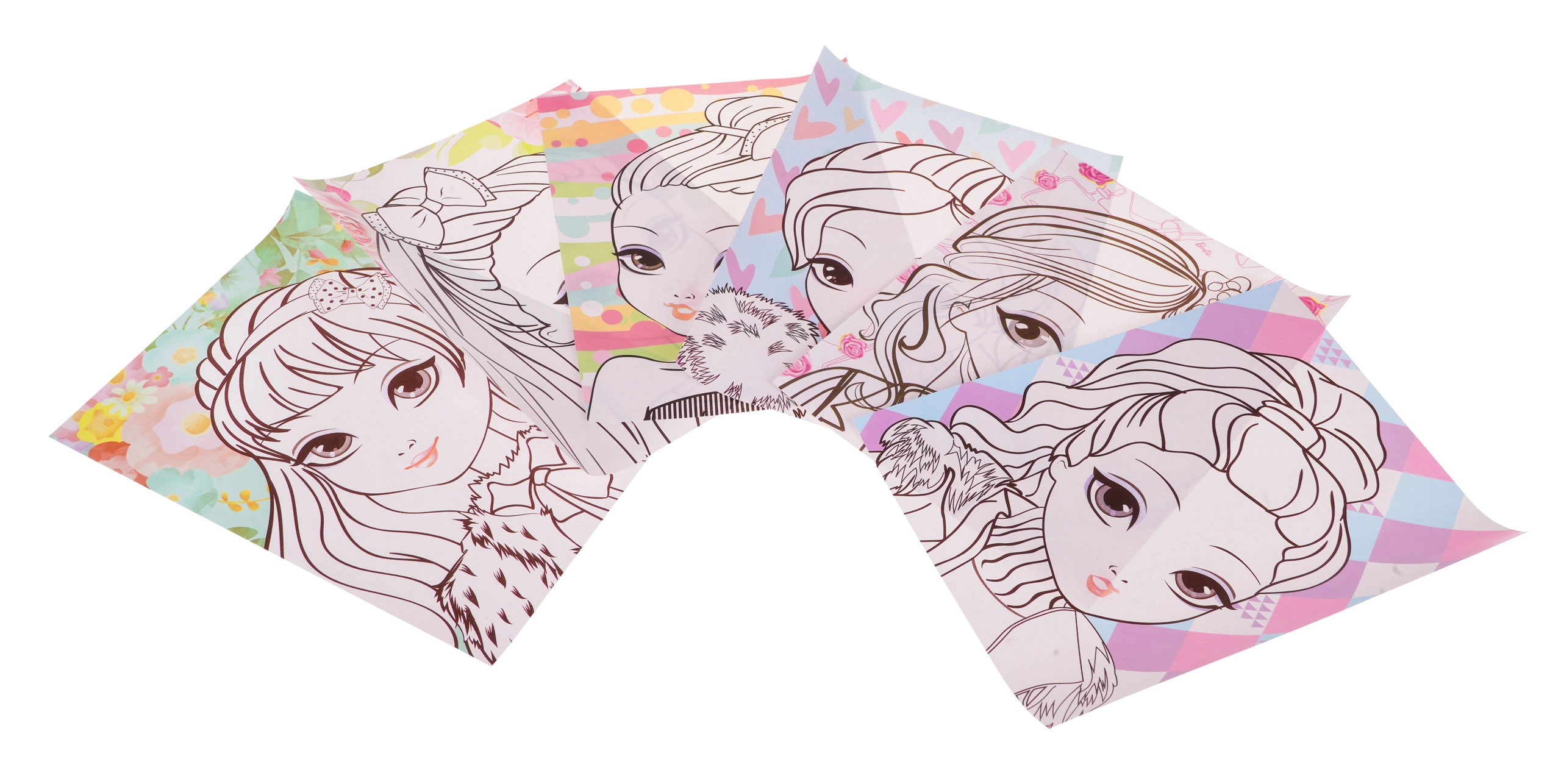Част от комплекта са шаблони и картинки с принцеси, които позволяват на децата да създават собствени рисунки и оцветявания.