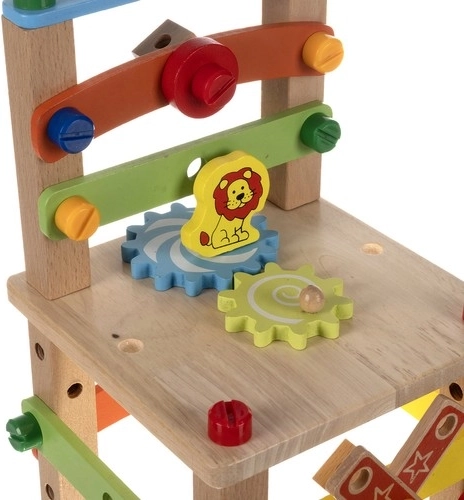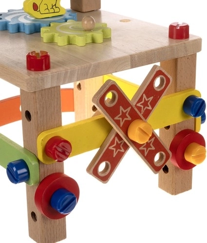 Пъстрите зъбни колела и други интерактивни елементи подпомагат развитието на моторните умения и творческото мислене.