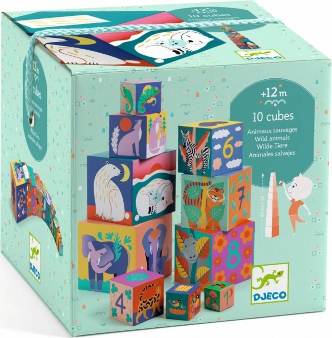 Всяко кубче съдържа числата 1–10 и весели илюстрации на диви животни, които подпомагат ранното учене и речниковия запас.