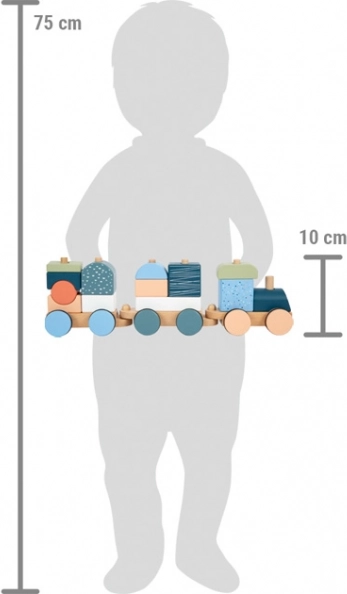 Открийте магията на Севера с дървеното влакче в нежни арктически тонове от small foot. Изработено от FSC® 100% дърво, предлага тихо движение благодарение на гумираните колела и игра 2 в 1 – подреждане и нанизване на елементи. Децата развиват фината моторика, координацията око–ръка и въображението, докато дизайнът с висок дял естествено дърво красиво украсява детската стая.