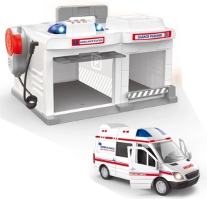 Игрови комплект със светлинни и звукови ефекти. Лесно преносим благодарение на дръжката. Натисни бутона в горната част на автомобила, за да видиш светлинни и да чуеш звукови ефекти. Обаждане – натисни бутона от лявата страна и разговорът ще започне. Вграден високоговорител. Наслади се на много забавление с този игрови комплект.