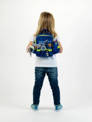 Полицейската раничка BEN & SAM е идеална за ролеви игри и развиване на въображението и социалните умения. Качествената изработка от марката Klein осигурява дълъг живот и удобно носене благодарение на регулируемите презрамки. Отразителните ленти повишават видимостта на детето при игри навън.
