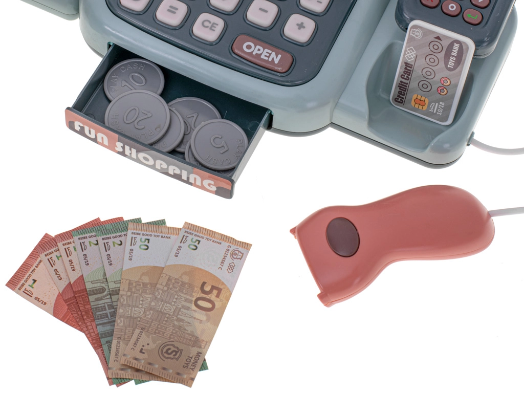 Тази интерактивна каса за деца насърчава въображаемата игра и учи на основите на математиката и търговските транзакции. Касата е оборудвана с истински функциониращ микрофон, кантар и LCD дисплей. Бутоните и QR скенерът симулират реална ситуация на пазаруване, което прави касовите моменти автентични.