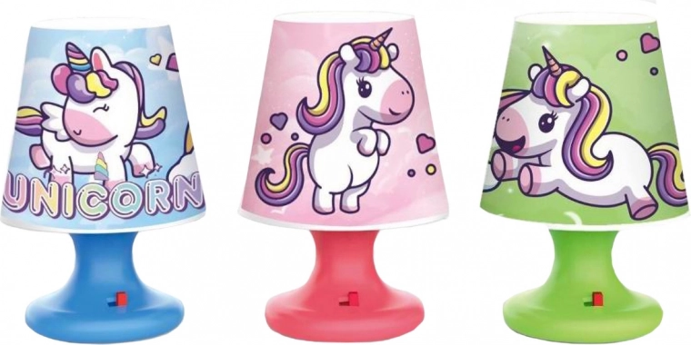 Очарователната мини лампичка във форма на еднорог внася нежна светлина и вълшебна атмосфера в детската стая. Благодарение на компактните размери 7,2 × 10,9 cm се побира на всяка повърхност, батериите 3× AG13 са включени, а можете да избирате от три цветови варианта – син, розов и зелен.