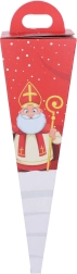 Традиционен червен корнет с мотив на Свети Николай с дължина 50 см, идеален за опаковане на никулденски подаръци за деца. Предлага достатъчно място за сладкиши и малки подаръци и благодарение на яркия цвят изпъква красиво. Отличен избор за родители и училища, които търсят практично, здраво и естетично решение за опаковане.