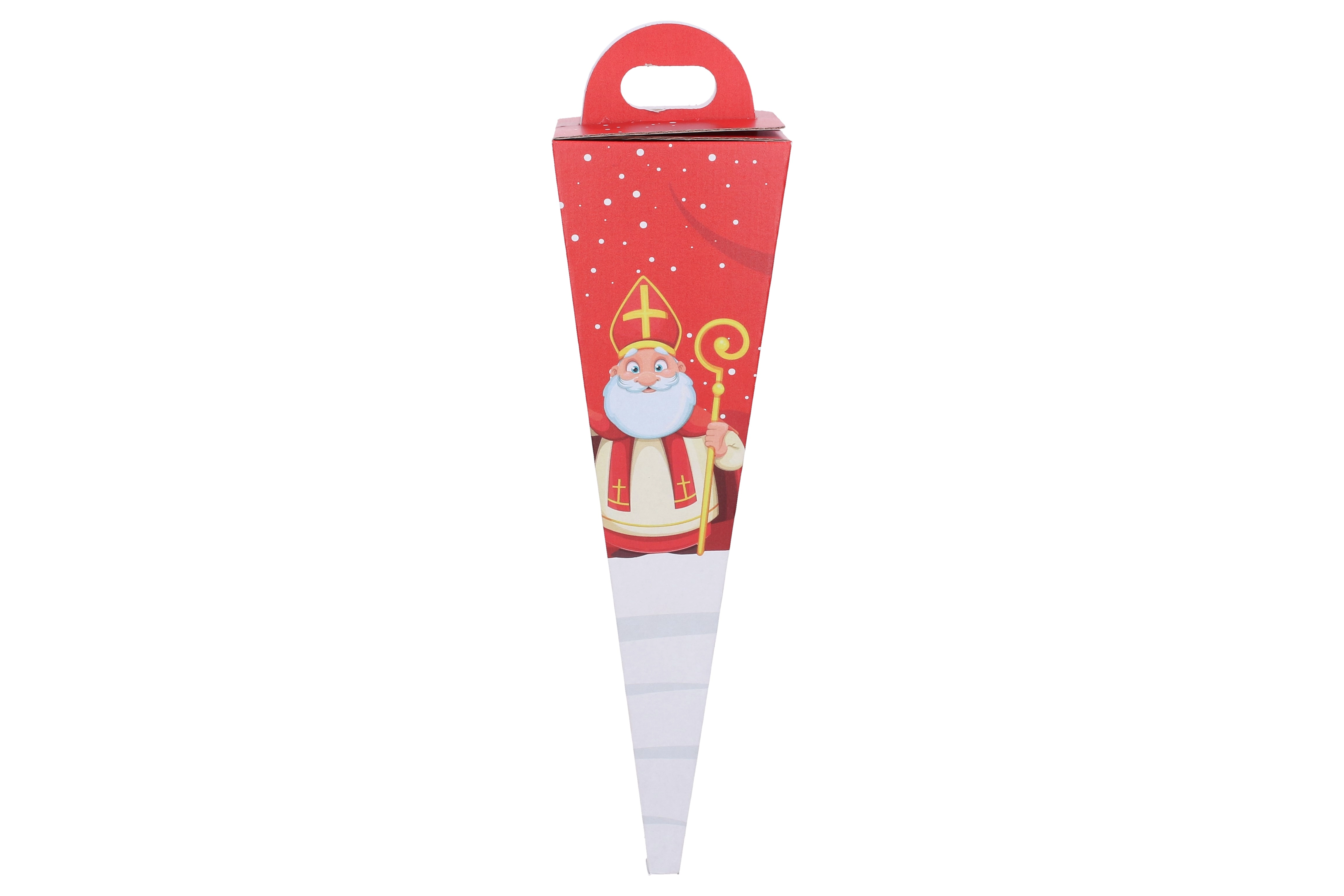 Елегантният червен корнет с мотив на Свети Николай ще зарадва всяко дете и ще улесни подготовката на празничната изненада. Благодарение на дължината от 50 см побира достатъчно лакомства и впечатлява с класическия си вид.