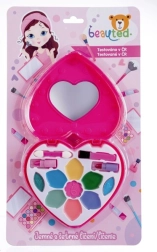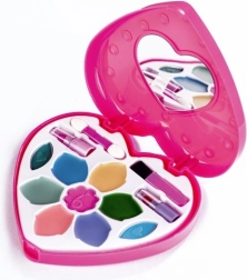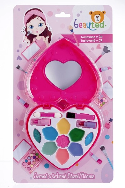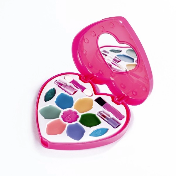 Козметичният комплект е във форма на сърце с прозрачен капак и огледалце, които насърчават креативността и стилното изживяване.
