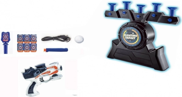 Този комплект за стрелкова забава включва подвижна мишена, два пластмасови пистолета, стрели и топче. Мишената е с височина 30 см и лесно се настройва за различни нива на игра. Може да се зарежда с USB кабел или с батерии, което осигурява гъвкавост при използване.