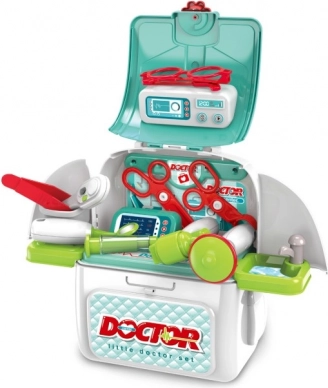 Лекарският комплект в раница е перфектен инструмент за развитие на детското въображение и за ролеви игри. Раницата се пренася лесно и при разгъване служи като малък кабинет, където децата могат напълно да използват своите „лекарски“ умения.